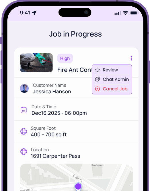 Customers easily request services, receive real-time job updates, pay invoices, and leave Google reviews all inside one simple app that keeps them informed and connected.